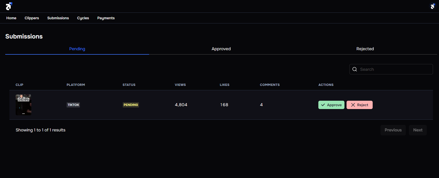 Go to https://app.sharethat.co/creators/submissions. You will see a list of pending submissions.